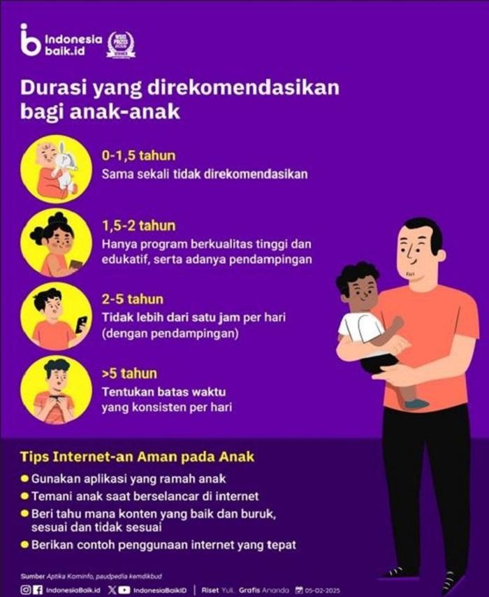 Anjuran pada infografis tersebut mencerminkan adanya gejala sosial yang timbul akibat penggunaan internet yang tidak terkontrol oleh anak-anak.