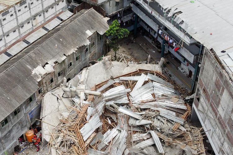 Berdasarkan data sementara, 107 orang berhasil dievakuasi dengan lima di antaranya meninggal dunia, sementara puluhan lainnya masih diduga tertimbun reruntuhan.