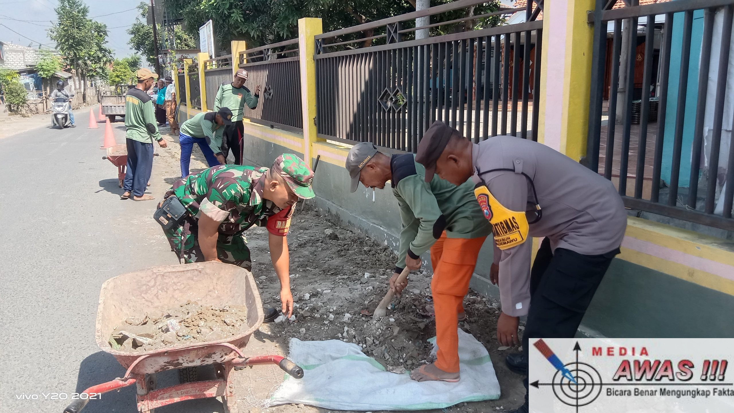 PAMEKASAN, Media Awas. Com– Babinsa Desa Prekbun, Sertu Sarkawi, bersama masyarakat melaksanakan kegiatan gotong royong pengecoran jalan desa yang berada di depan Madrasah Al-Muballiqin, Desa Prekbun, Kecamatan Pademawu, Kabupaten Pamekasan. selasa(2/12/2025)