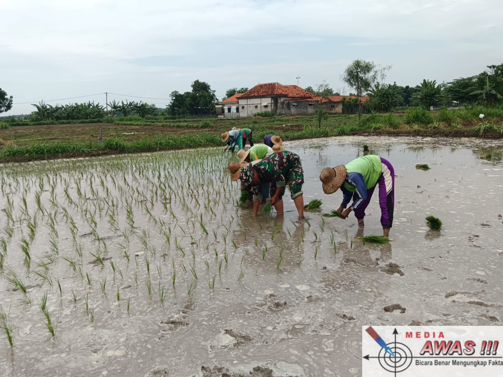PAMEKASAN, Media Awas. Com– Babinsa 0826-04/Galis, Sertu Zainoddin, melaksanakan pendampingan penanaman sekaligus perawatan tanaman padi milik Bapak Hafiudin (57 tahun), seorang petani di Dusun Candi, Desa Polagan, Kecamatan Galis, Kabupaten Pamekasan. kamis(4/12/2025)
