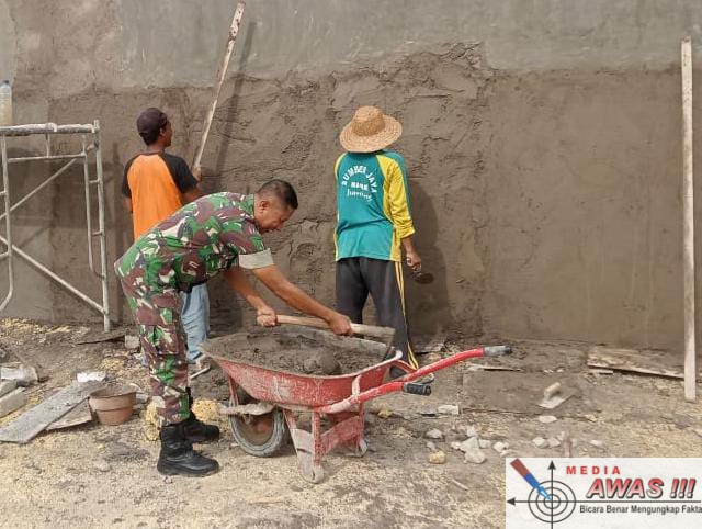 Dalam kegiatan tersebut, Serma Sufriadi turut membantu warga melakukan pengadukan semen yang digunakan untuk pengulitan tembok bangunan koperasi. Kehadiran Babinsa yang terjun langsung bekerja bersama masyarakat diharapkan dapat mempercepat proses pembangunan sekaligus menumbuhkan semangat gotong royong di tengah warga.