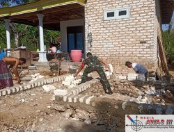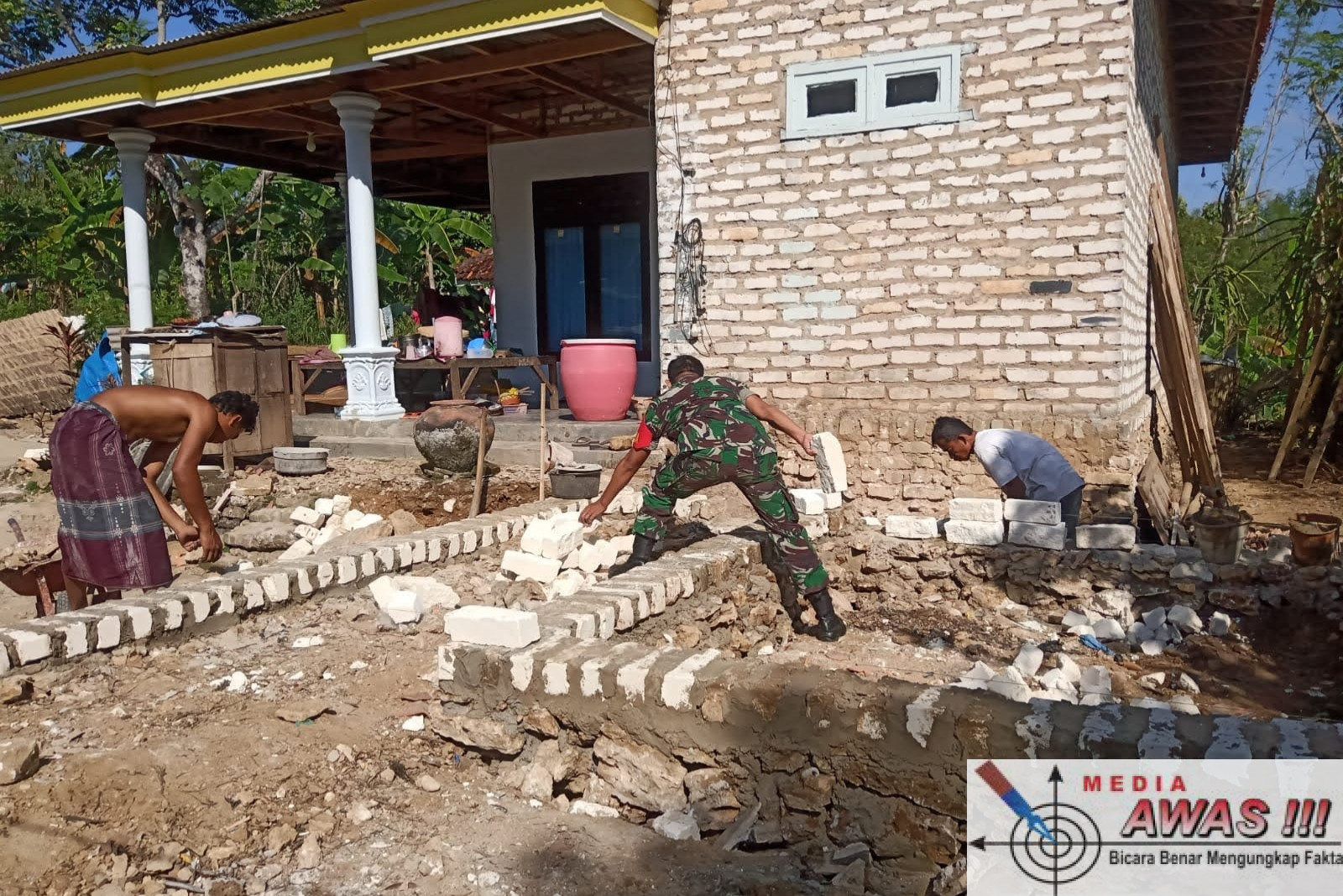 PAMEKASAN, Media Awas. Com– Babinsa Koramil 0826-10/Waru, Serda Syaiful Rahman, melaksanakan kegiatan Bakti TNI dengan membantu pembangunan rumah milik Mukramil, warga Dusun Panjelin, Desa Waru Barat, Kecamatan Waru, Kabupaten Pamekasan. Kegiatan ini merupakan bentuk kepedulian TNI terhadap masyarakat di wilayah binaan.