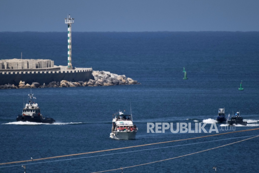 Kapal berbendera Spanyol ini membawa enam relawan dan aktivis, termasuk dari Bahrain dan Prancis.