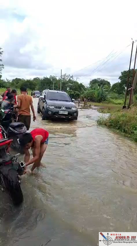 “Tadi pagi masih bisa lewat (motor dan mobil). Tapi sore ini, sekitar jam 16.00 WIB, air malah naik. Sekarang hanya kendaraan roda empat yang bisa melintas, kalau roda dua sudah tidak bisa lagi sama sekali,” keluh Hamim.