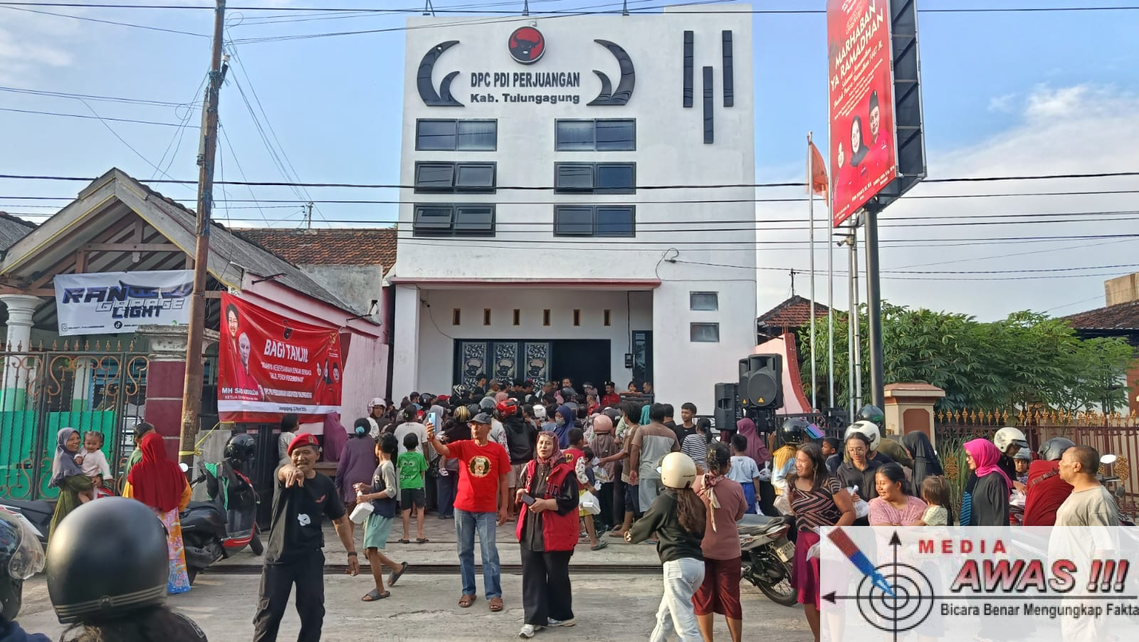 MediaAwas.TULUNGAGUNG – Dewan Pimpinan Cabang (DPC) PDI Perjuangan Kabupaten Tulungagung membagikan ratusan takjil kepada masyarakat yang melintas di Kantor DPC setempat. Jumat (13/3/2026).