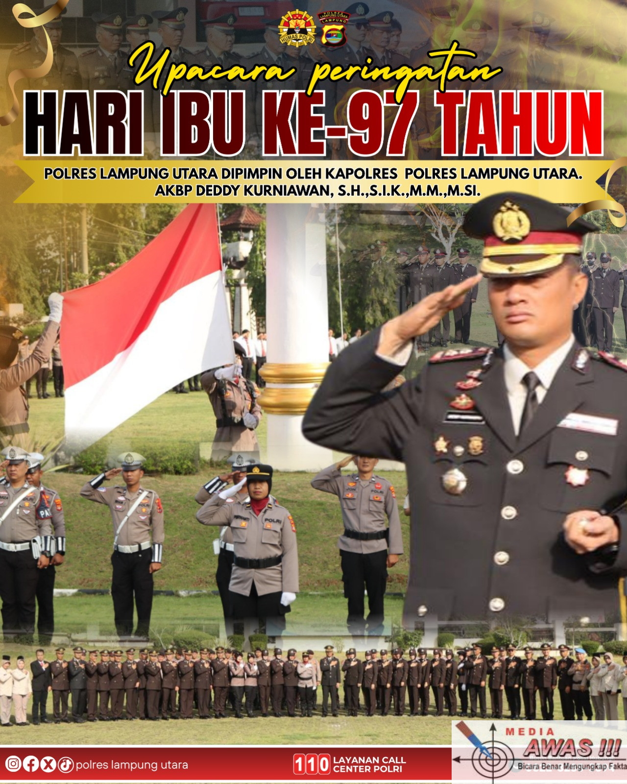 Mediaawas.com Kepolisian Resor Lampung Utara menggelar upacara Peringatan Hari Ibu ke-97 Tahun 2025 di halaman Mapolres Lampung Utara, Senin (22/12/2025).