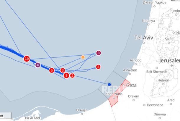 Pelacak Global Sumud Flotilla, memantau armada kapal yang masih berlayar ke Gaza pada Kamis (2/10/2025) siang. – (GSF)