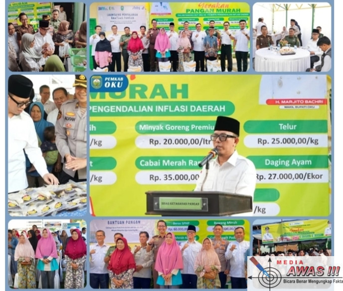 Baturaja mediaawas.com, OKU โ Memperingati Hari Ulang Tahun (HUT) ke-115, Kabupaten Ogan Komering Ulu (OKU) kembali menunjukkan komitmennya untuk kesejahteraan masyarakat. Melalui Gerakan Pangan Murah (GPM) yang digelar di halaman Kantor Dinas Ketahanan Pangan (DKP) OKU pada Rabu (23/7/2025), Pemerintah Kabupaten OKU, bekerja sama dengan Perum Bulog OKU, Hiswana Migas, dan pihak terkait lainnya, berhasil menghadirkan solusi nyata bagi pengendalian inflasi daerah serta menjaga stabilisasi harga dan pasokan pangan.