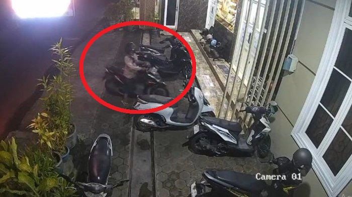 Salah satu pelaku, yang mengenakan hoodie abu-abu dan helm, turun dari motornya. Ia langsung bergegas menuju Honda BeAT nopol S 4864 OBH milik Aisy. Motor tersebut tidak dikunci setang, sehingga memudahkan pelaku untuk membawanya pergi. Setelah berhasil menggasak kendaraan, pelaku kemudian menuntun motor tersebut ke arah selatan, meninggalkan lokasi bersama rekan satu timnya.