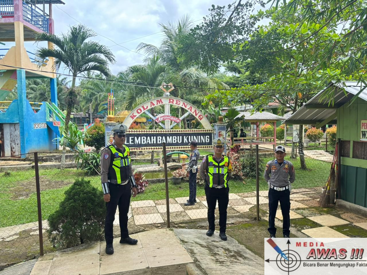 keamanan dan ketertiban tetap kondusif, Personel Polres Lampung Utara dan Polsek Kotabumi Utara melaksanakan patroli di sejumlah objek wisata pada Senin (23/3/2026).