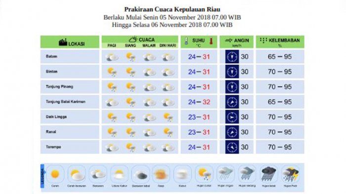 Prakiraan Cuaca Kepulauan Riau untuk Hari Ini