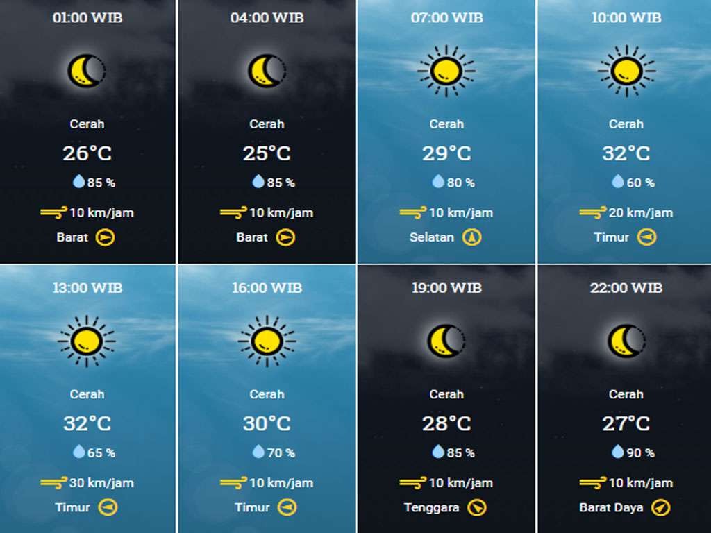 - Suhu: Ukuran seberapa panas atau dingin udara. Biasanya, suhu tertinggi dan terendah dalam sehari akan disebutkan.