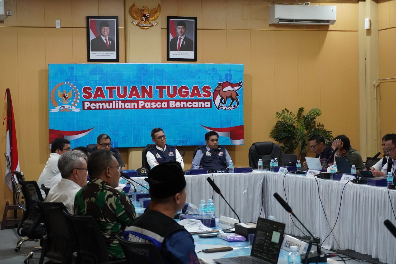 Satuan Tugas (Satgas) Pemulihan Pasca Bencana yang dibentuk oleh DPR RI mengadakan rapat koordinasi dan sinkronisasi pertama bersama 14 perwakilan kementerian dan lembaga pemerintah pusat di Posko Pemulihan Pascabencana (Galapana), Aceh. Acara ini digelar pada Senin, 5 Januari 2026. Rapat dipimpin oleh Anggota Komisi IV DPR RI, TA Khalid, dan dihadiri para Person in Charge (PIC) dari kementerian/lembaga yang ditunjuk untuk bertugas langsung di Aceh.