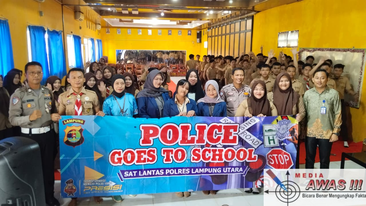Mediaawas.com Lampung Utara – Dalam rangka meningkatkan kesadaran dan kedisiplinan pelajar dalam berlalu lintas sejak usia dini, Unit Keamanan dan Keselamatan (Kamsel) Satlantas Polres Lampung Utara melaksanakan kegiatan Police Goes To School berupa penyuluhan dan pembinaan kepada pelajar SMA Bhayangkari Kotabumi, Kabupaten Lampung Utara, pada Jumat (23/01/26) pagi.