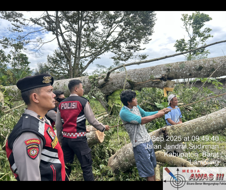 Mediaawas.com Lampung Barat – Satuan Samapta (Satsamapta) Polres Lampung Barat bergerak cepat melakukan evakuasi pohon tumbang yang menimpa sebuah truk pengangkut barang, pada Selasa (30/9/2025) sekitar pukul 10.00 WIB.