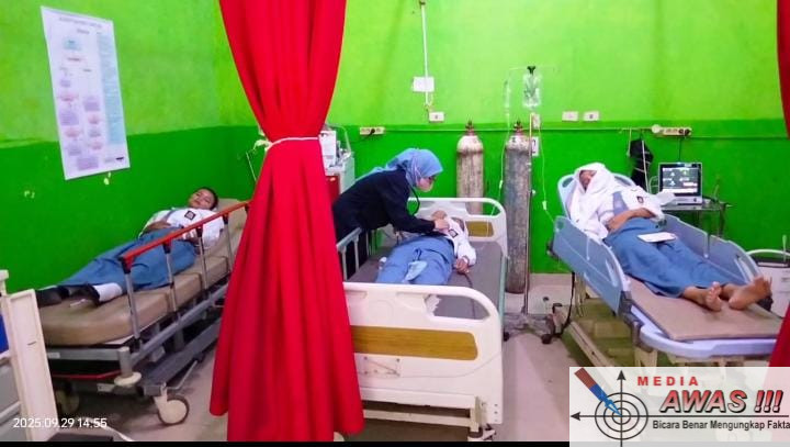 Mediaawas.com LAMPUNG UTARA– Puluhan siswa sekolah menengah atas negeri 4 Kotabumi kabupaten Lampung Utara diduga mengalami keracunan Makanan Bergizi Gratis (MBG). Senin 29/09/2025. Puluhan siswa tersebut dilarikan ke rumah sakit (RS) Handayani Kotabumi. Terpantau di lokasi para siswa yang mengalami dugaan keracunan MBG tersebut, sebagaian tergeletak lemah, dan sebagian masih ada yang di bopong untuk mendapatkan penanganan medis.