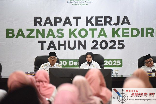 MediaAwas.KEDIRI – Wali Kota Kediri Vinanda Prameswati membuka Rapat Kerja Baznas dan UPZ se-Kota Kediri, yang diselenggarakan di Ruang Joyoboyo Balai Kota Kediri, Rabu (10/12/2025).